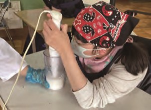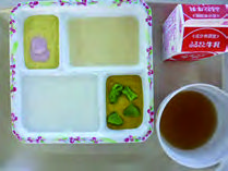 「食事のとり方」や「食具の使い方」等について、外部専門家の指導を受けたり、初期・中期・後期・普通食の4種類の食形態で児童生徒が安全に食事をしたりできるように、給食を提供しています。