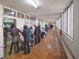 避難訓練の後に、年2回、市役所や消防署の方、半谷地区の方との連絡協議会をもっています。