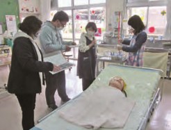 吸引や吸入、注入、導尿等の医療的ケアを要する児童生徒が、安心してケアを受けられるように、ケアルームには看護職員が常駐しています。安全な医療的ケア実施のために、緊急対応想定訓練や職員研修を行っています。